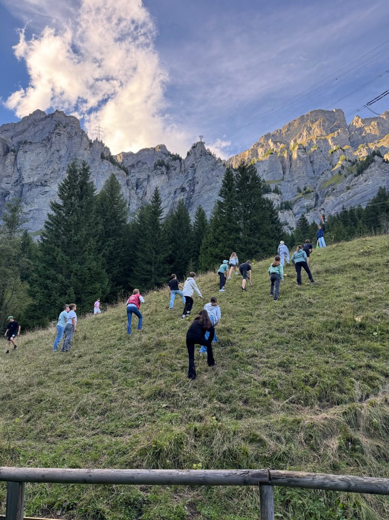 Wir sind am Mittwoch Wandern gegangen auf einen Berg. Wir sind zuerst mit der Seilbahn auf den Berg gefahren die Seilbahn hiss Gemi glaube ich. Als wir oben ankamen, sind wir zuerst auf die schwebe Plattform gegangen. Danach sind wir los gewandert wir sind auf einem Weg gewandert, der zu einer Hölle geführt hat. Die Hölle war klein und eng und nass. Danach sind wir auf einem schönen Stein Weg gekommen da sind wir etwa 50min gewandert der weg war gerade und schön. Nach den 50 min kam eine Brücke über einen Bach da haben wier ein Foto mit allen fast allen Kindern, die da waren, ein Foto gemacht. Als wir mit dem Foto fertig waren, ging es an den Hügel, auf dem das Haus stand, wo wir hinwollten. Es ging los ich konnte nach den ersten paar Minuten nicht mehr, aber wir sahen Murmeltiere. Es gab ein teil vom weg der steil war und rutschig war da musste man sich an einem Seil halten. Als wir oben ankamen, haben wir das Mittagessen gegessen. Dan haben wir einen Stein turn mit der Zimmergruppe gemacht. Danach sind wir alles zurück und die die wollten konnten vom Berg runter Wandern und bekam dafür Zimmerpunkte. Danach hatten wir 3stunden Pause. Danach sind wir grillieren gegangen und haben spiele gespielt danach war der Tag Fertig.