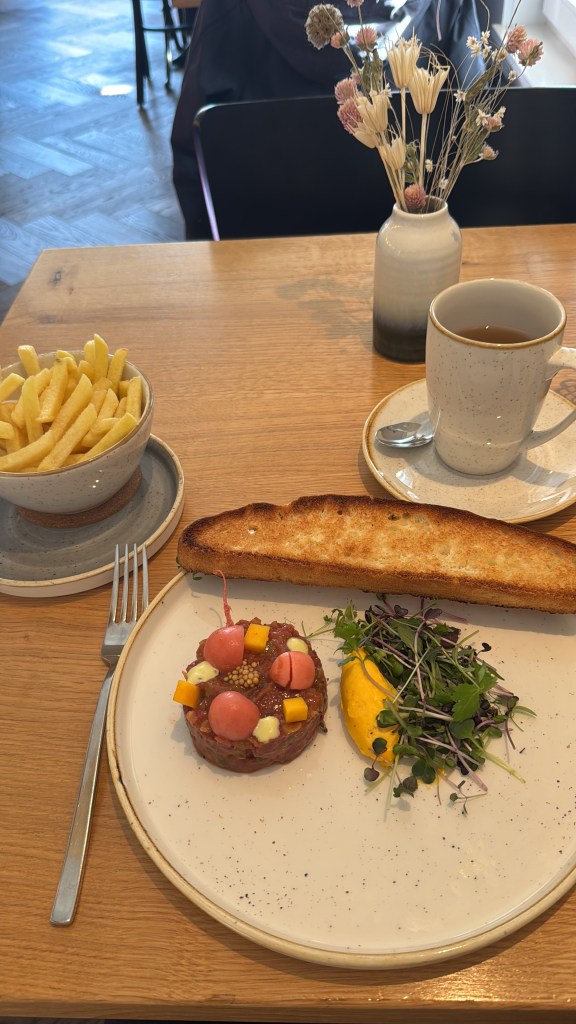 Auch der Zukunftstag bot einen spannenden Einblick in die Arbeitswelt. Ich habe dort Besuch abgestattet, wo es möglich war, und durfte so ein leckeres Tartar im Bären geniessen, serviert und vorbereitet von Ben. Am Nachmittag habe ich mir zudem einen feinen Chai Latte und ein Stück der Torta della Nona bei Elin gegönnt.